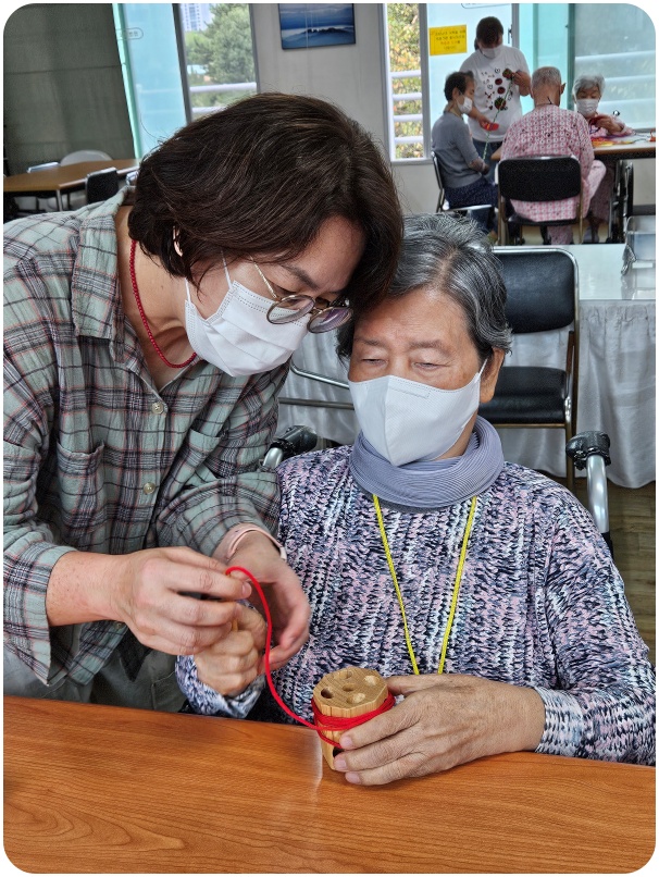 10월의 노인용 교구 활용프로그램 페이지 정보 작성자 최고관리자 작성일25-10-20 10:16 조회303회 댓글0건 이전글 다음글 목록 본문 그랜드자연요양병원에서는 노인생활과학연구소가 개발한 다양한 노인교구를 노인용 교구 활용지도사를 통해 입원하고 있는 어르신들께 적용하여 인지개선, 공간지각, 소통도구로 활용하고 있다. ◈ 그랜드자연요양병원에서는 프로그램 진행 시 개인위생, 방역수칙을 준수하여 활동하고 있습니다.◈ 댓글목록 등록된 댓글이 없습니다. 이전글 다음글 목록